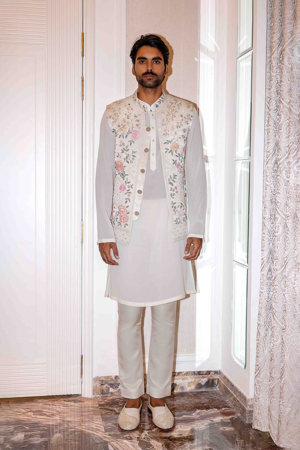 Fabric: Bandi: Linen Tissue Satin / Kurta: Silk Georgette / Bottomwear: Crepe Satin