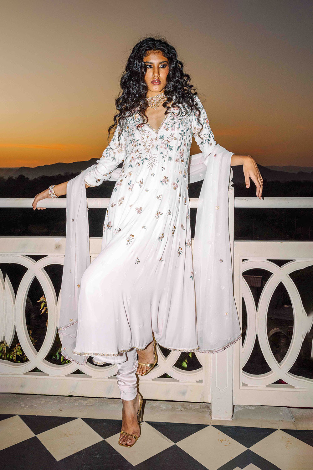Chikankari Hand Embroidered Kalidar Kurta Set